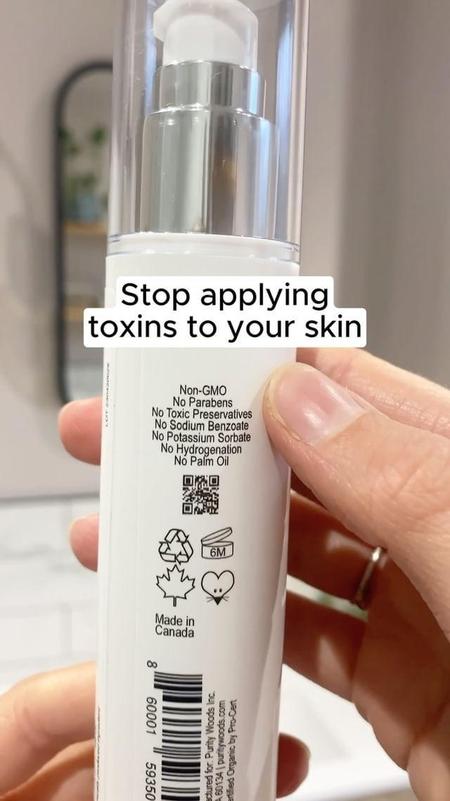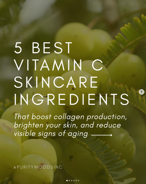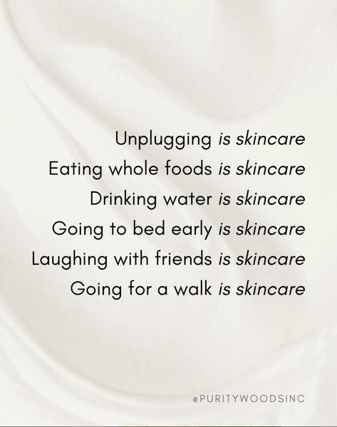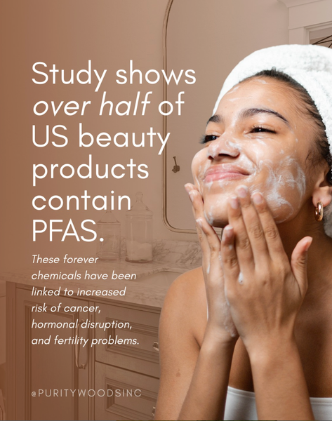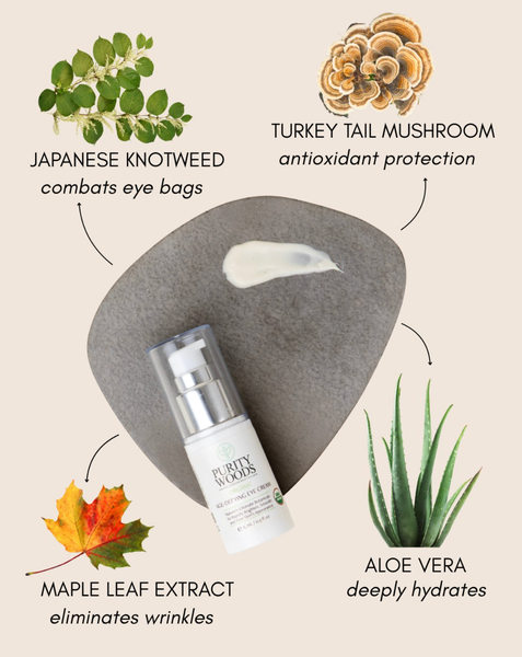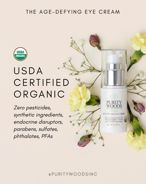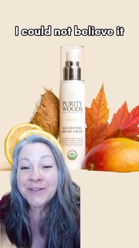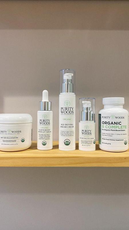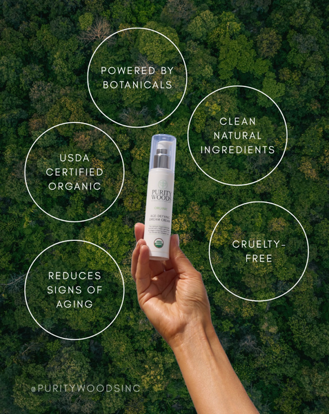 Social media content highlighting Purity Woods organic, healthy-aging skincare line.