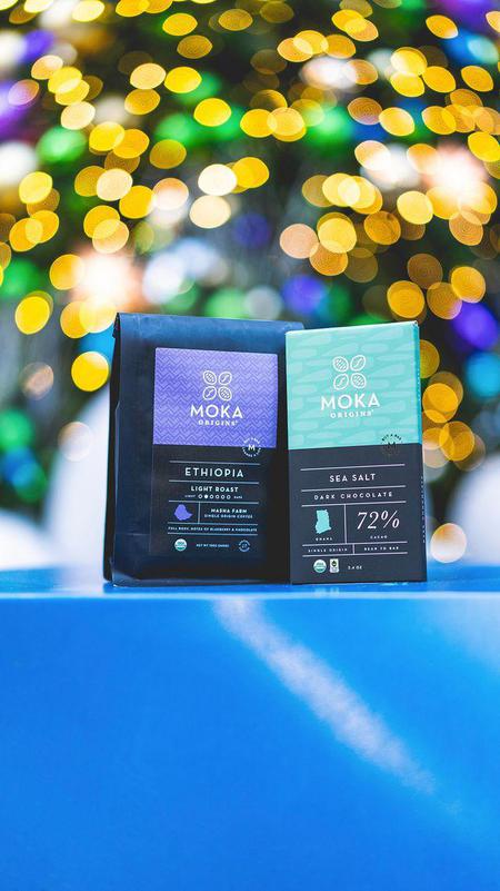 Social media content for Moka Origins highlights their small-batch CPG products and subscription service.